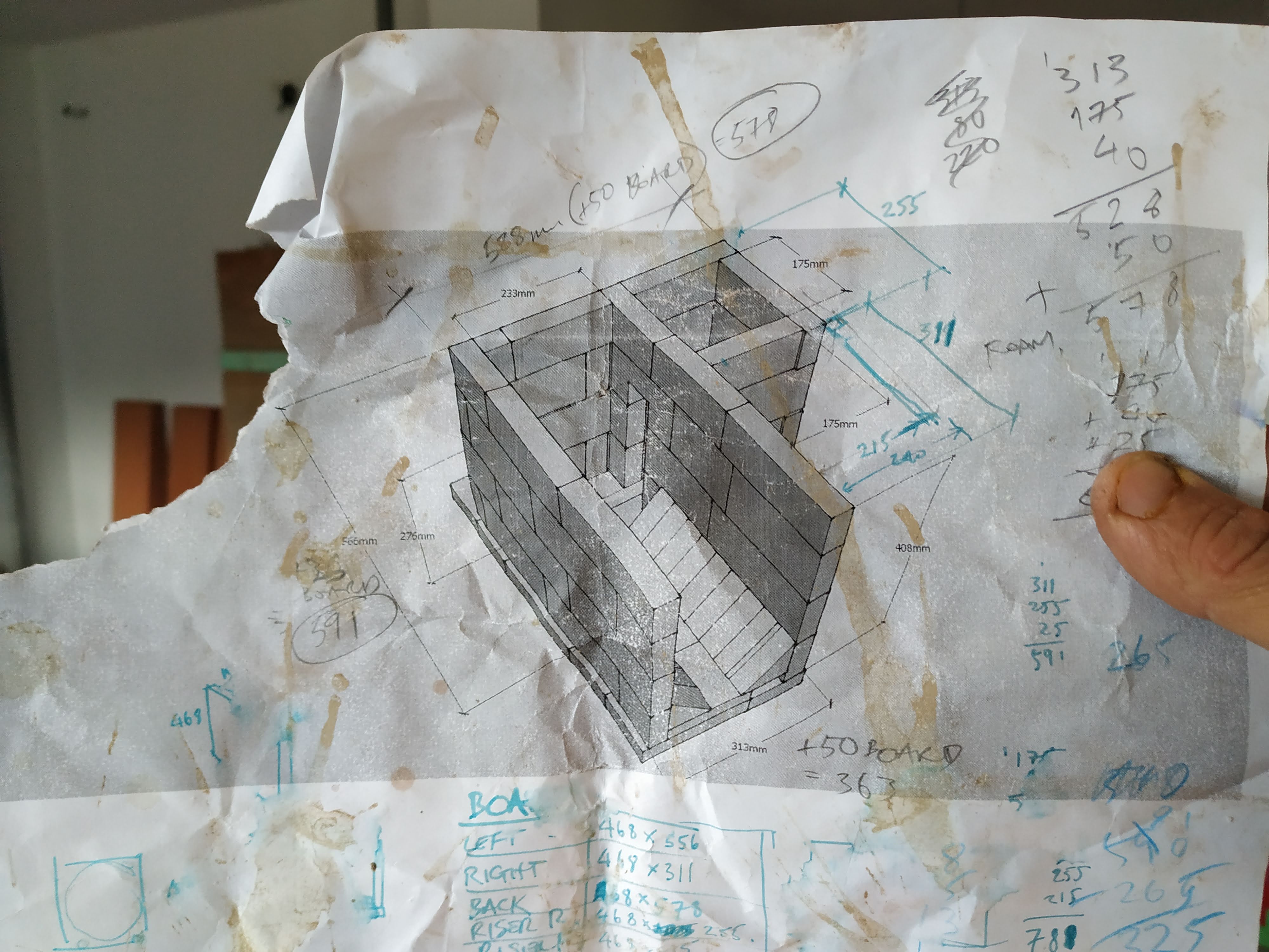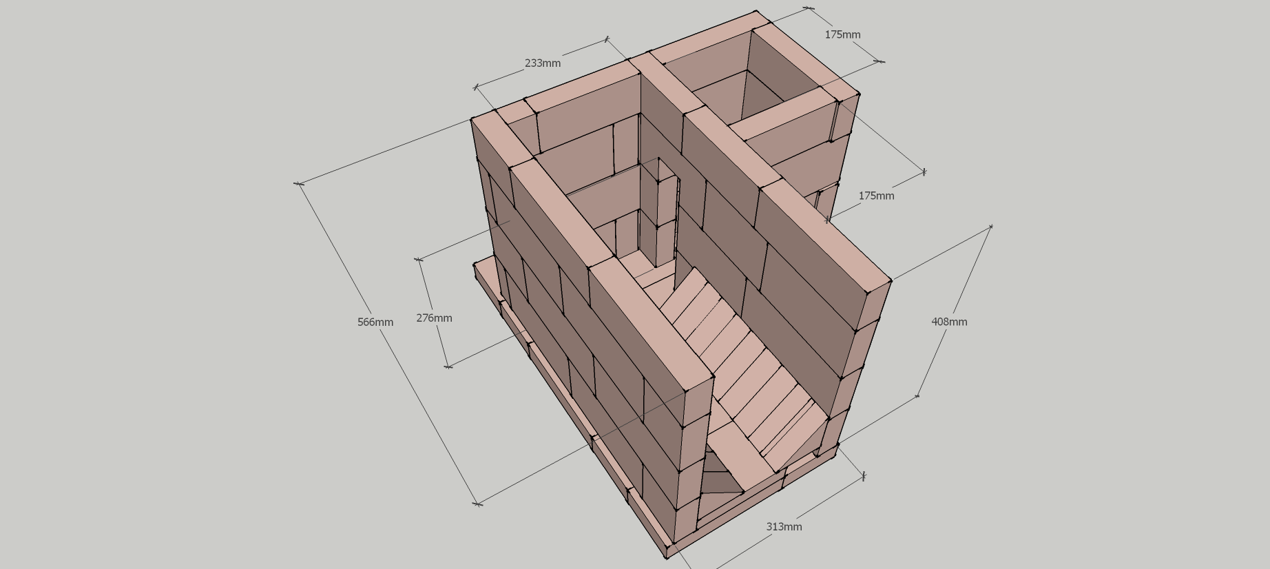 Design……I scaled Peter’s design to a 175mm system and found the best layout on Sketchup using the local refractory brick. I ordered some rather expensive fibre ceramic boards.